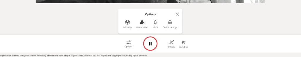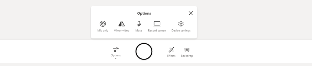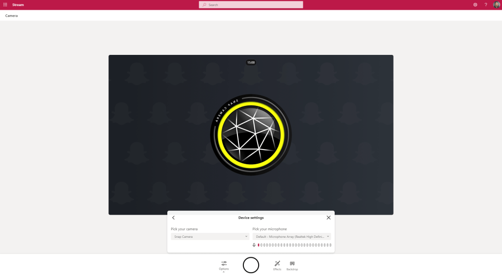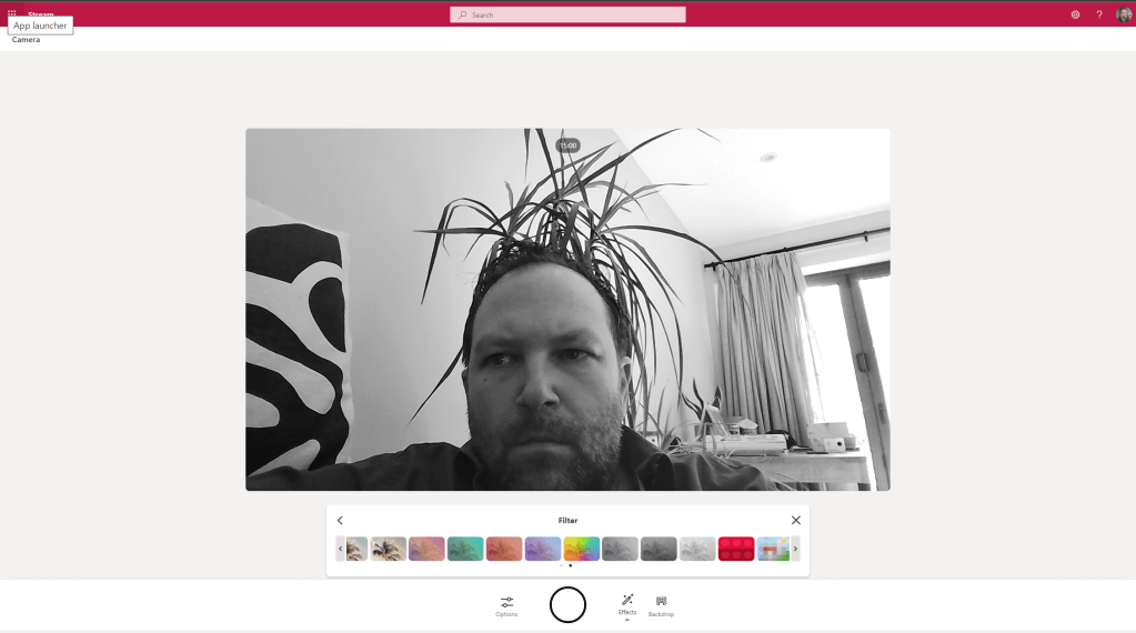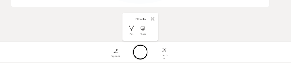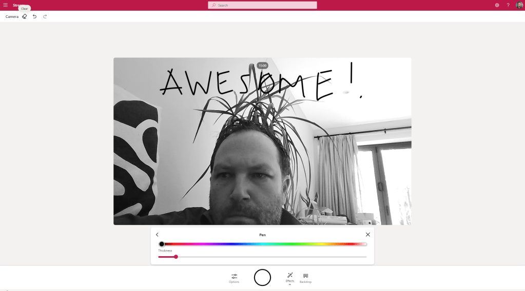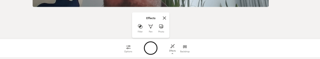 2.) The video stream will switch on. On the recording bar select Effects and you will have the ability to add FIlters, draw with a Pen or insert Photos