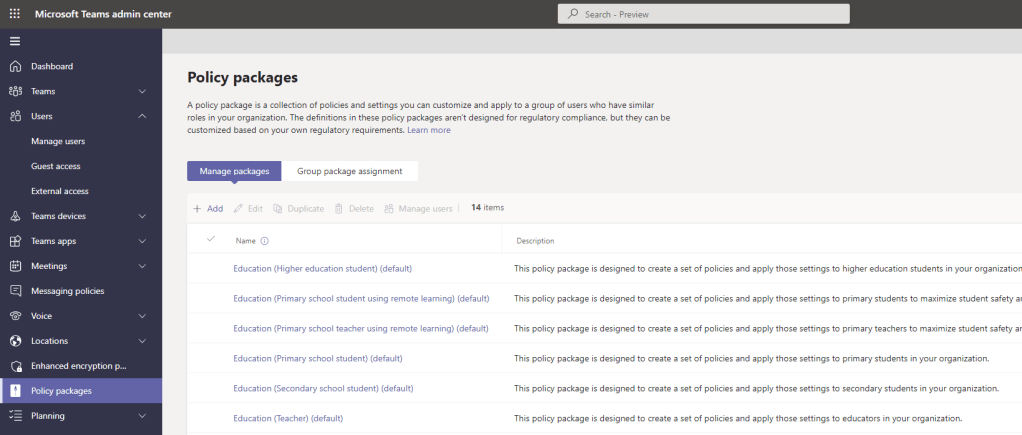 Now, there is an interesting case involving Policy Packages. Policy Packages are what they say on the tin – packages (or containers for want of a better word) of several policies such as a messaging and meeting policy which are designed to be assigned to roles within the organisation. Policy Packages, built on custom policies, are also directly assigned, and take policy precedence over groups and org wide. Are policy packages supported for bulk unassign?