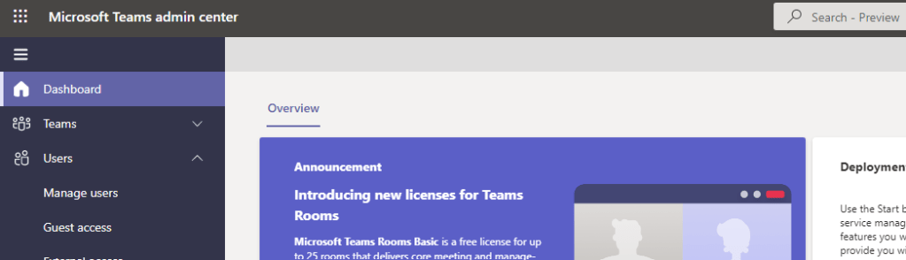 4.) In the Teams Admin Centre select Users and then Manage Users