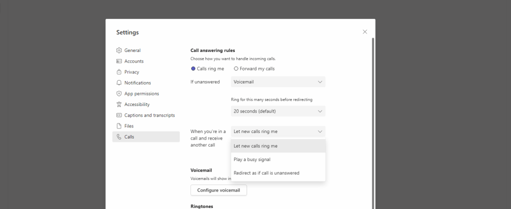 Now that the calling policy has been configured, and the propagation time of a few hours has completed, the user can check that the Busy-on-Busy settings have surfaced – and configure them. Remember, at the time of writing the user has to be in preview to see this functionality, so if they don’t see it get them to switch to the preview in the settings.
