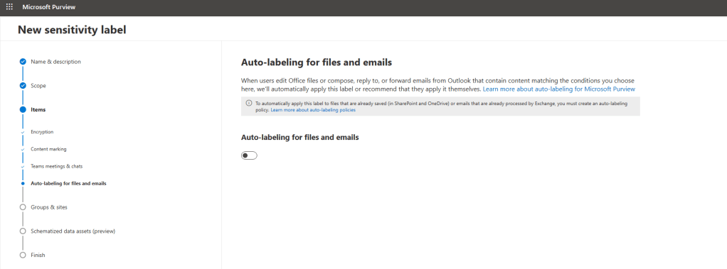 10.) Fourth, automatic labelling which doesn’t support meetings at the time of writing. This stays off and select Next