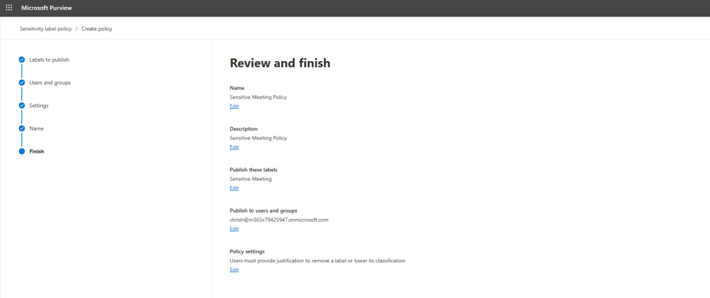 Congratulations. We have now created both the Sensitivity Label and the Label Policy and applied it to users with the Teams Premium Licence so they can apply that specific label in Private Meetings. We now begin the propagation period which can take up to 24 hours to surface. We can check pack in the Purview portal that both the label and the policy have been created. Here, it is shown that the label has the highest priority, and the policy has the highest priority. If you haven’t worked with Sensitivity Labels up to this point it is recommended to look into and learn about prioritisation and precedence.