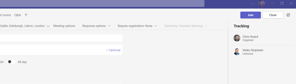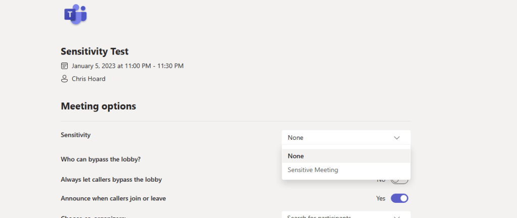 Signs that it has been applied is that the sensitivity will be shown in the meeting details at the top right – although faint. I imagine this experience will change over time and become far more explicit