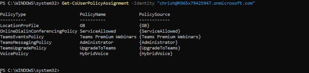 Get-CsUserPolicyAssignment -Identity "[UPN]"