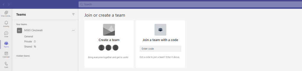 1.) In the Teams Client, in the Teams App select Join or Create a Team