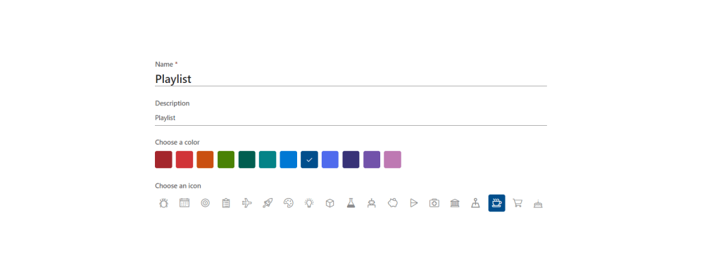 7.) Give the List a Name, Description, Colour and Icon and select Create