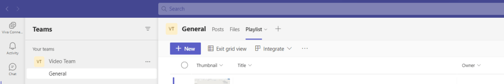 So the Playlist is up and running. Awesome. Let’s go get this in Teams
