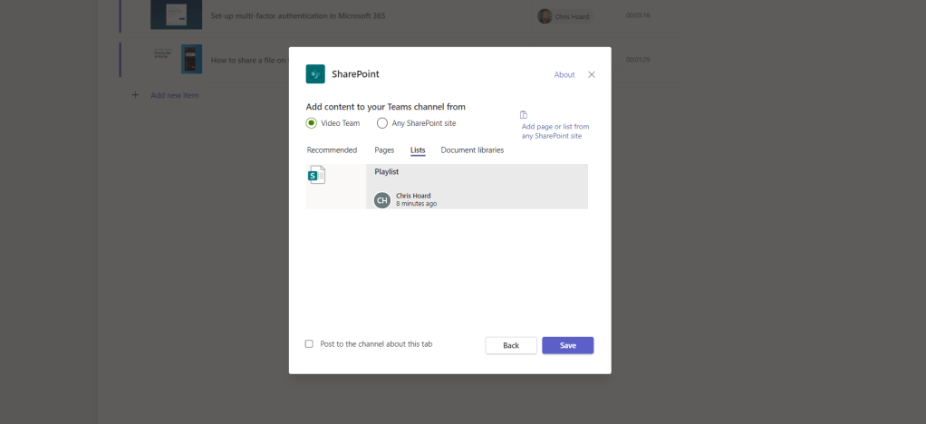 Now we have cleaned up the video we are ready to add it to the List. But, as opposed to adding the content in Teams, the content will be added in the Lists App