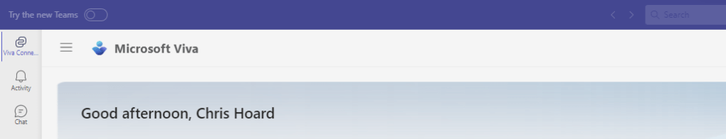 6.) The outcome of this is that the user (s) will now see a switch in the top left of the Teams client. Select Try the New Teams