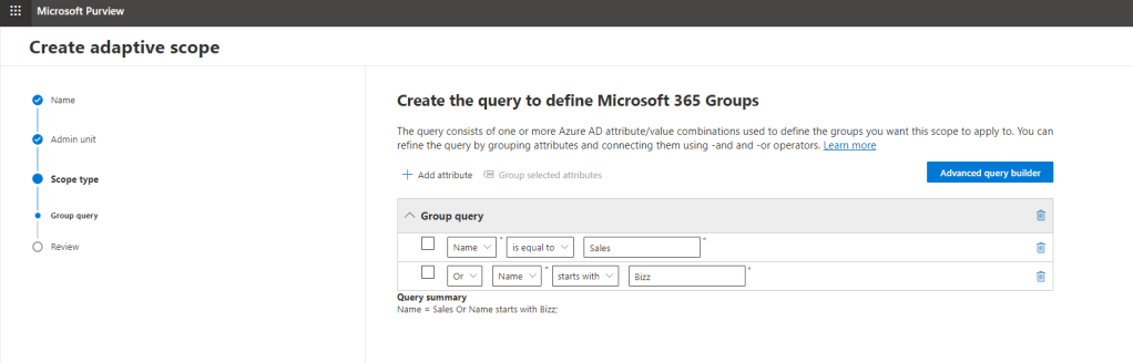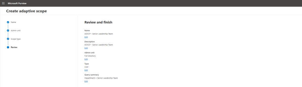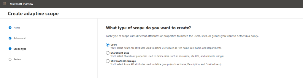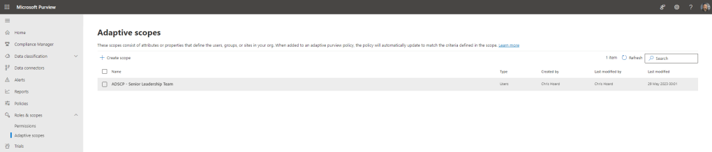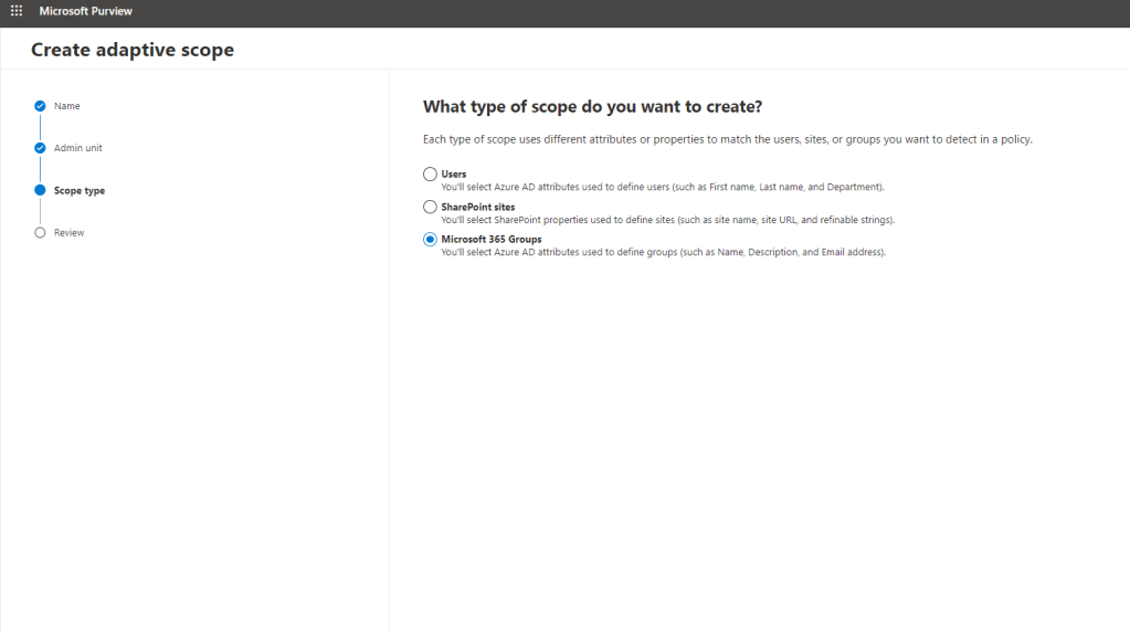 - Creating an Adaptive Scope with Microsoft 365 Group Scope Type