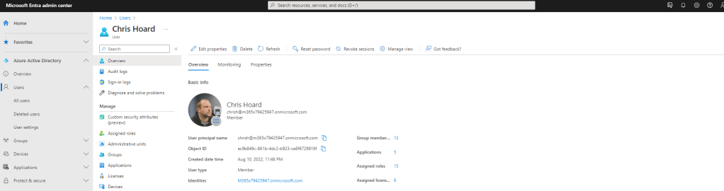 4.) In the Microsoft Entra portal under Azure Active Directory select Users then All Users