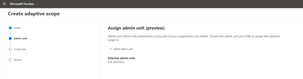 Now that Azure AD is prepared we can go and create the adaptive scope. When I previously wrote about adaptive scope the scope was set when creating the retention policy. Now, we can go and create the adaptive scope prior to creating the policy, so this element has changed.