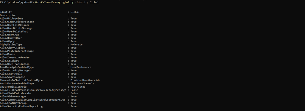 Get-CsTeamsMessagingPolicy -Identity Global
