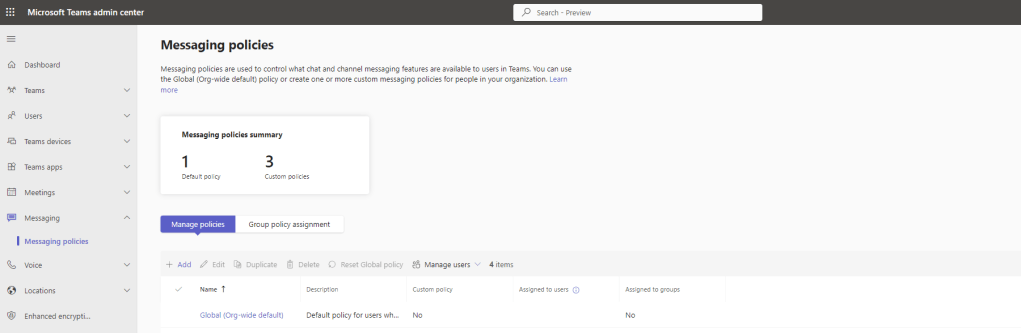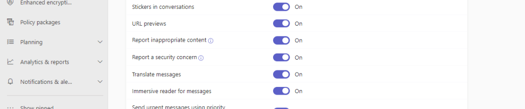 This may take time to propagate but we are now setup. The preview is enabled. The Microsoft 365 Defender Portal is set and the Teams Messaging Policy is set. As already covered above, ensure that all Messaging Policies are configured and applied to the users in the TAC or via Powershell.