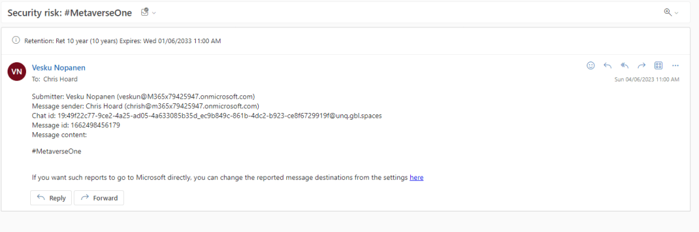This is just an introductory look at end user reporting and I am impressed by what I have seen in this simple setup. It will be interestering to see where Microsoft takes this in the next 12 months, and if we will see – for example, full integration with the explorer. But it is a great start, XDR in Teams and the ability for users to report on sight will help admins immensely in terms of identifying and detecting malicious attacks coming through our collaboration tools we use every day.