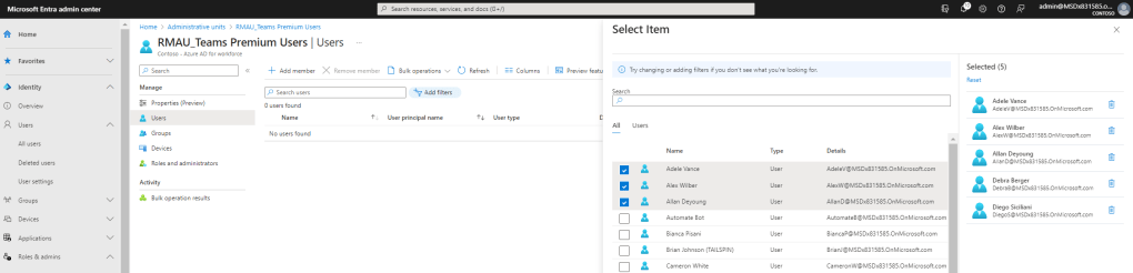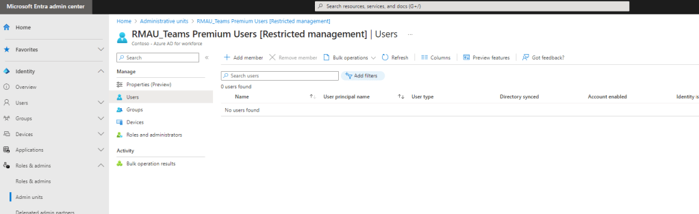 14.) The users have now been added to the Restricted Management Administrative Unit