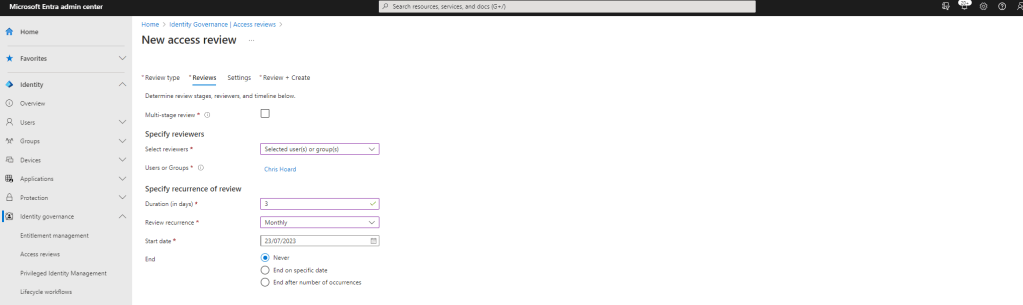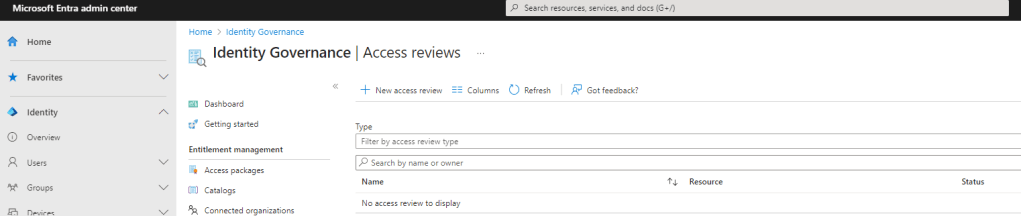Now that everything is ready to go, let’s configure the Access Review in the Microsoft Entra Admin Centre.