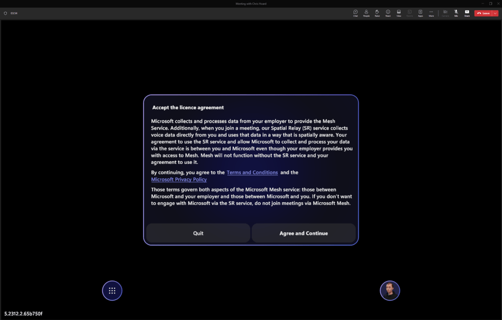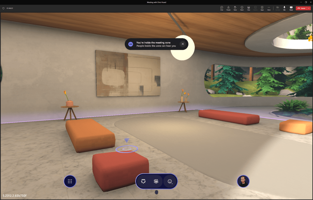 Last week we looked at the new Town Hall functionality set to replace Teams Live Events. And as promised we are going to venture again into the meeting/events space by looking at the introduction of Mesh Immersive Spaces into public preview. For many, these spaces will constitute the next step forward with Microsoft Mesh after the introduction of Avatars into Teams. But what are they? By definition they are ‘three-dimensional (3D) immersive space(s), helping virtual meetings/events feel more like face-to-face connections. [They] have unique attributes that create a perception of being physically together [with]in a 3D digital space, including spatial interaction, co-presence, and immersion’ (Microsoft, 2023). In other words they are designed to be active meeting experiences as opposed to passive, and to have a level of immersion which you may not get from a standard Teams meeting, or even an in person experience. And whilst on the face of it they may seem to be a natural fit for remote workers or orgs which operate in hybrid in order to equalise the meeting experience, they are very much as you will discover applicable for all. If you have ever used platforms such as the recently retired AltSpaceVR you may already be familiar with such an experience in principle. Now it is here in the Microsoft Teams classic client; soon to be 2.1. It’s time to try it out – and I am pretty sure I’ll be writing many more blogs on Microsoft Mesh over the coming year as this is just the tip of the iceberg. Its good to see Microsoft prrogressing with their Metaverse offering.