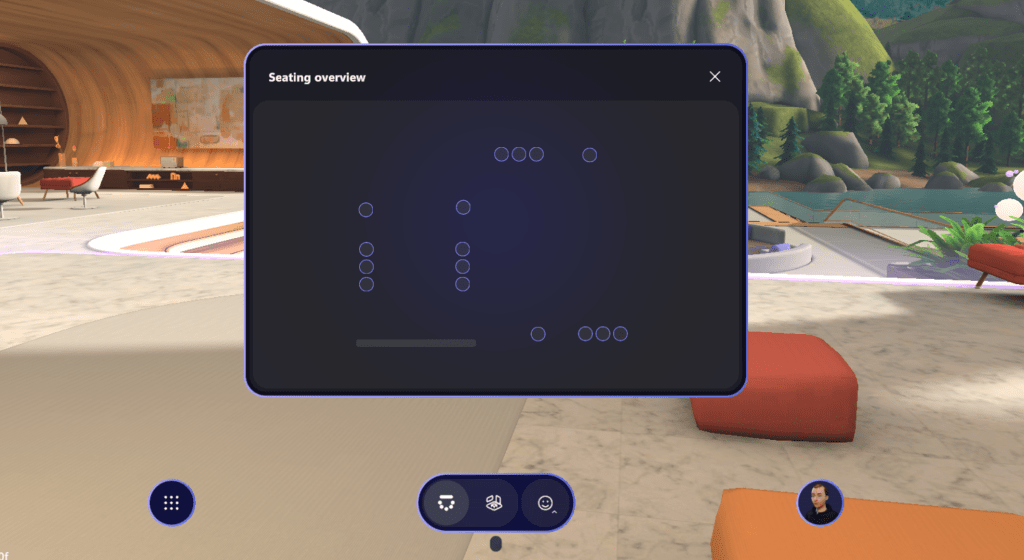 A.) Yes it can. At the time of writing I had the option to share window or screen – but not PowerPoint Live, or Excel Live or any other option. In addition, I could not see the content I shared within the Immersive Space so either at the time of writing its a.) Not there yet on the version I have, or b.) Only others can see the content in the Immersive Space. Being able to see your own shared content in the space would be awesome